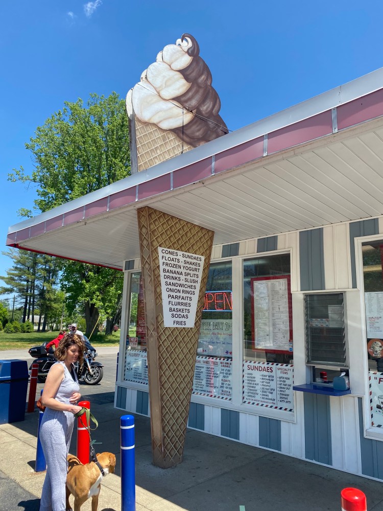 Miracle suggested some months ago that we come to the Finger Lakes region of New York. Hiking, camping, wineries, vistas, and eateries. Even if you’re only into one of these things (or boats—lots of boating too if that the thing that, well, floats your boat), this is a trip worth taking. So far we’ve stopped at two wineries—equally impressive and located just two miles from each other. (Or, if you’re Google Maps, it is six miles by dirt road. I’m not kidding.) Damiani Wine Cellars was an old-school winery located atop a hill. They have an honest-to-God full-scale bocce ball court and offer indoor, outdoor, and balcony seating. The folks there are super nice and they are dog friendly. Atwater Vineyards is just down the road/around the globe via Google. I spent some time talking with Bobby who was friendly and knowledgeable. When asked if their wines were dry, he replied, “Bone Dry.” That’s our kind of place. They had ample covered outdoor seating and the view—amazing of course.