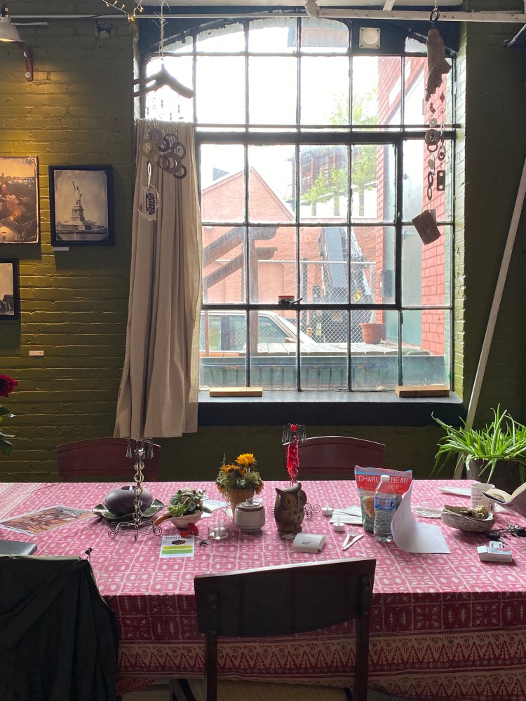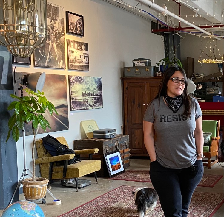 Well, we met a woman, Jen Hunter who uses her moments of stasis to keep moving forward. Jen is an artist and we met up at her studio, Vagabond, at Front Street Galleries in Dayton Ohio, in the old warehouse district. Across the street is an active warehouse where trucks come and go. Down the hall, some musicians were jamming. It is definitely not the ideal recording location, but it is the right place to conduct this interview.