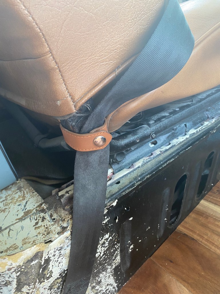 Here’s an easy peasy one to make your life a little easier. When I installed my new seat belts, I had an issue with them falling on the floor. I didn’t want to install stiff belt holders for a few reasons (number one being that the passenger seat is on a rotator). But the buckles kept falling on my pecan hardwood floor, which could mark it up and cause a tripping hazard.