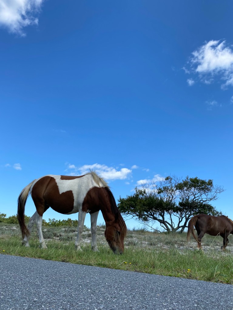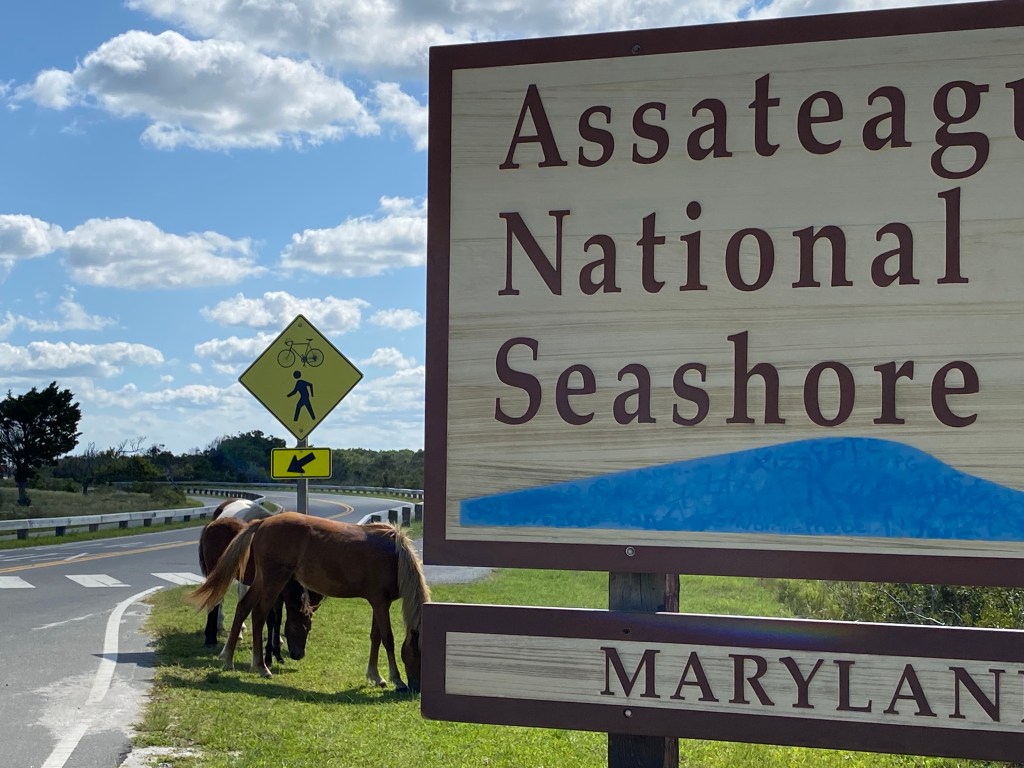 I have to admit that I was initially a little let down by Delaware. Many folks online told us about the beaches and the fun we would have in Rehoboth. And indeed the beach looked fun… except we had our dog, Jolene, who was not welcome on the beach. Or on most any other beach or boardwalk. The day was swelteringly hot and my temper runs short in the heat. Fortunately, there is a magical strip of land / National Park / State Park (state park is not dog-friendly) just south of Rehoboth. It’s a place where wild horses roam free called Assateague Island.