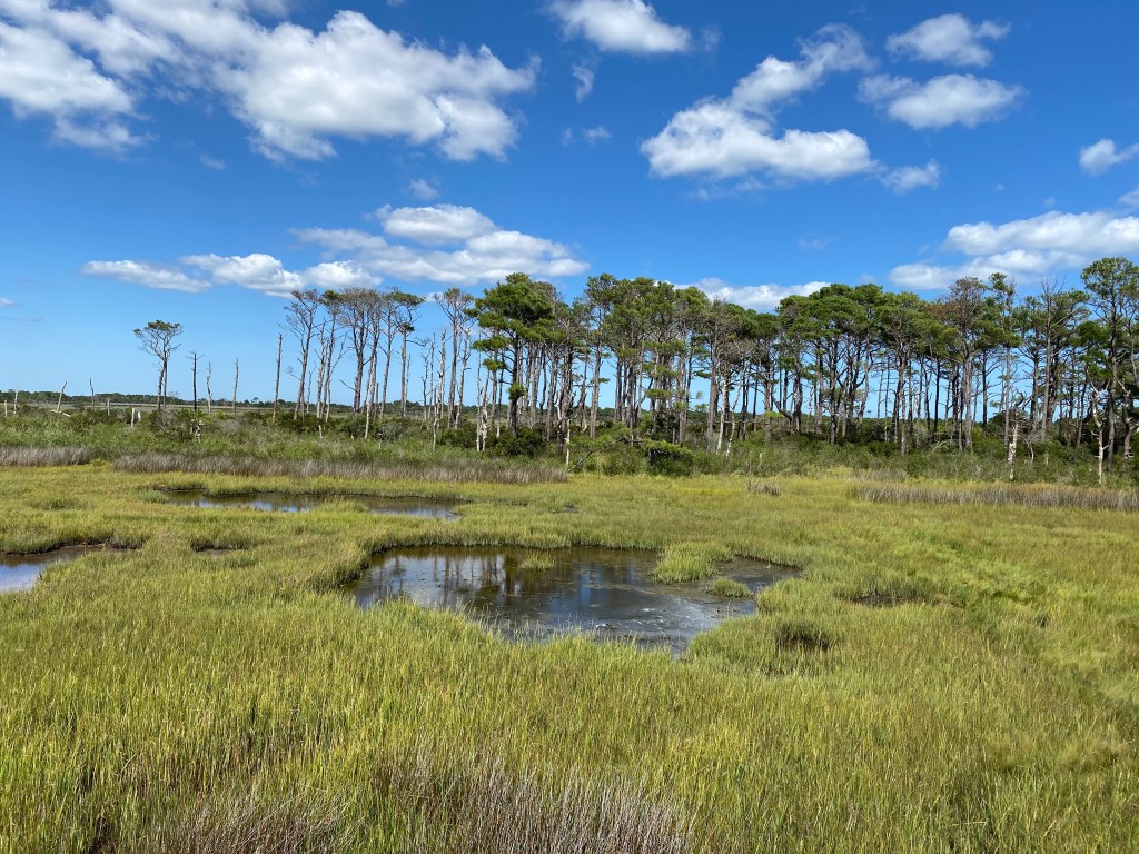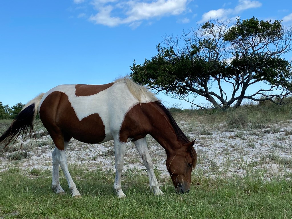 The amazing thing about Assateague is the delicate balance of ecosystems. The thin strip of land borders the Atlantic on one side with crashing waves and fine, white sand beaches. On the other side is a system of marshes and towering trees where the horses seek shade and drink fresh water. Clams and crabs also thrive in some of these inlets.
