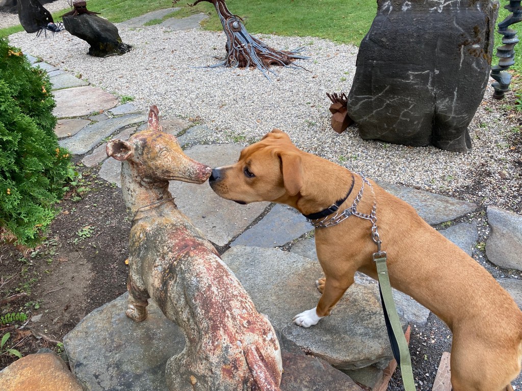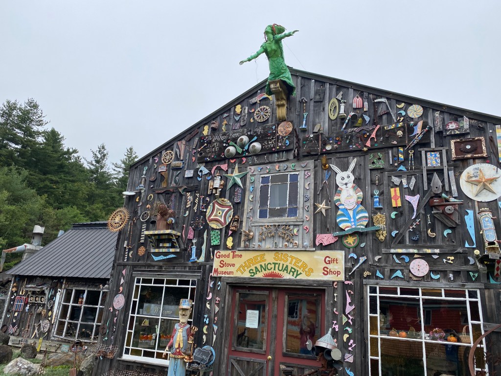 The next morning we shoved on to Amherst where I was pleasantly surprised to learn that no one knew of Melvil Dewey and they have zero places named for him. (Great—now on to getting Jackson off the twenty dollar bill please.) Two Amherst staff, Dean and Dave, directed us to Three Sisters Sanctuary—an outdoor sculpture garden. It was meditative, surreal, and fun.