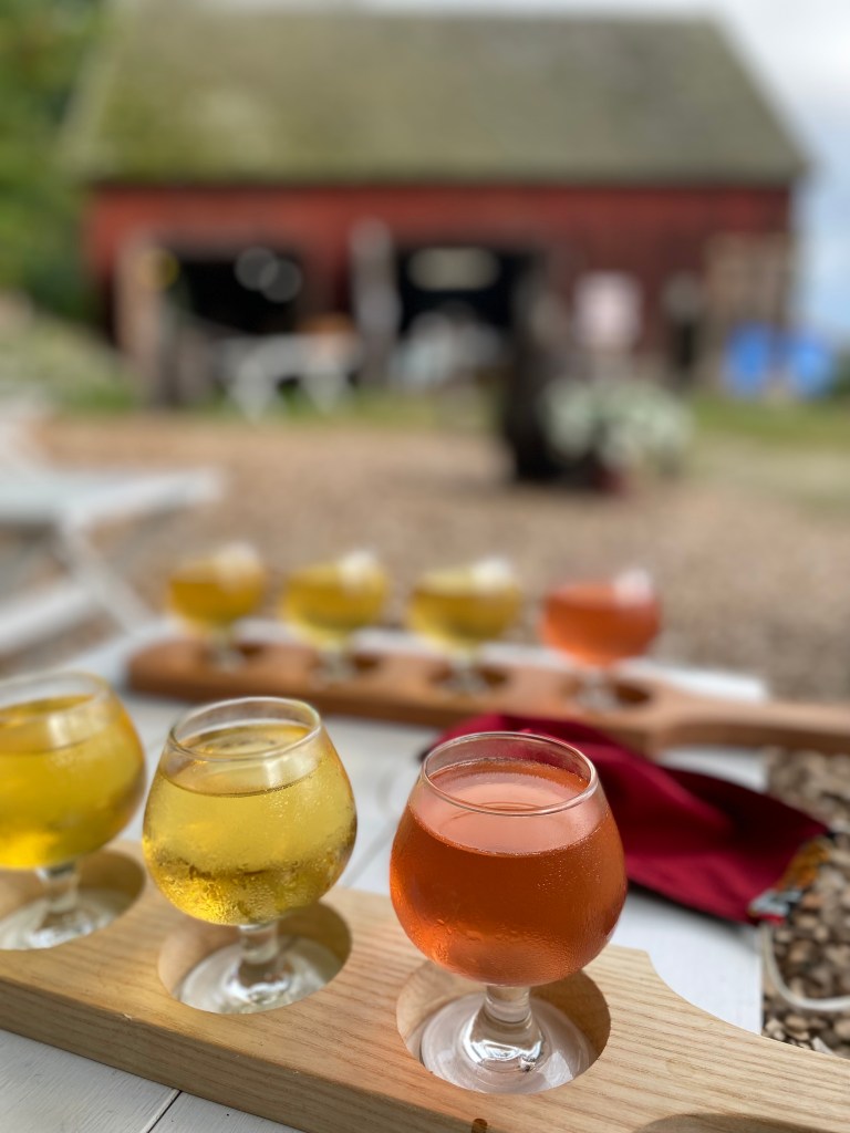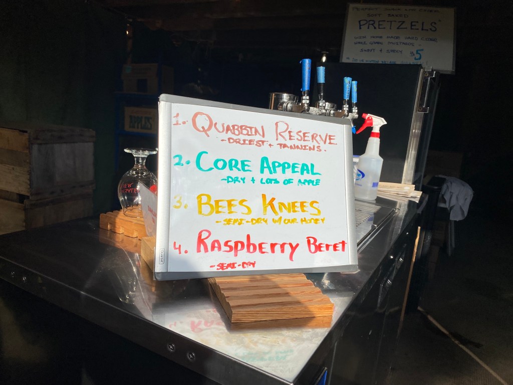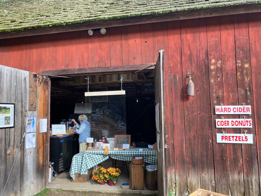 But then I saw signs for hard cider. I can’t resist a good hard cider. If I were to come upon a box propped up by a stick with a string attached and a bottle of hard cider under the box, I wouldn’t think twice. So we followed these apple-shaped signs for some miles through the rolling hills of Western Mass until we came to this little farm with a red barn overlooking a pasture. The farm owner, Carol—the woman who has owned and operated this farm for decades—was the person serving up all four varieties of cider. The place is called New Salem Cider.