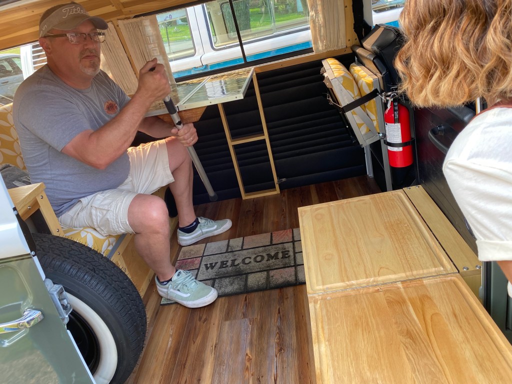 When we met Joe outside that brewery in Xenia, we had been driving by in our bus and saw a really sharp looking bus. Joe is a one-man bus-renovating machine.