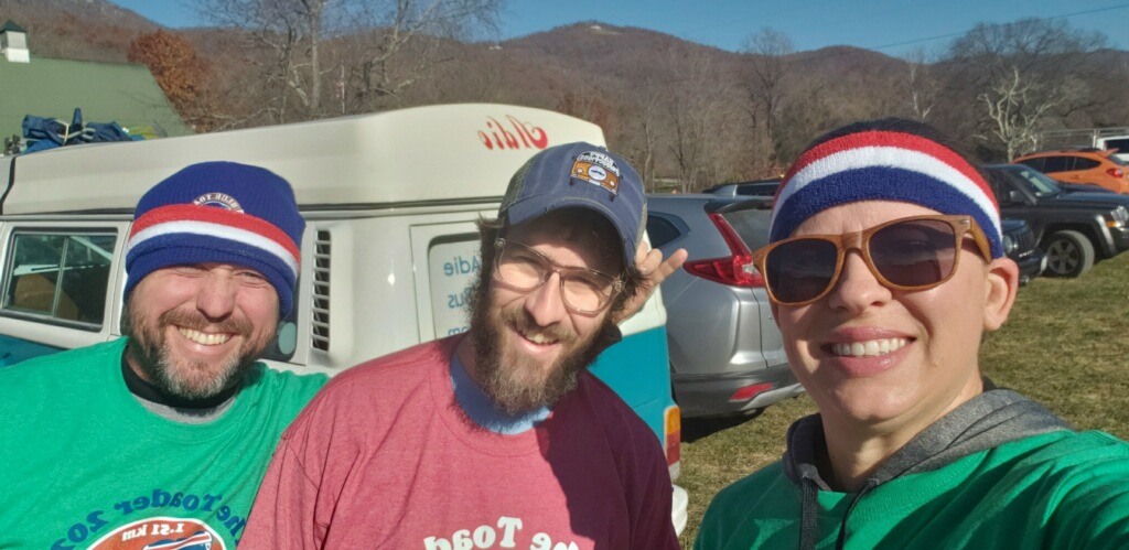 I’ve visited my buddy, Dustin, and his family at their mountain home many times over the past few years. This time though, we were there specifically for the annual post-Thanksgiving run held at Blue Toad Cidery in Roseland, VA, the Toader—a 1.51 km race that begins with drinking a hard cider, continues on to a donut stop, before hitting the final stretch with a strip of bacon. It is, by all rights, not a serious competition.