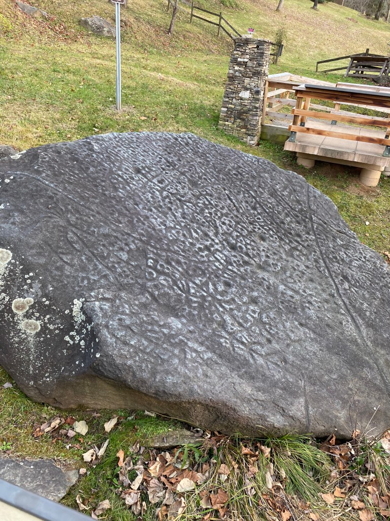 We stopped near Cullowhee where my old grad school buddy, Jonathan, lives with his wife—a talented musician, Susan Pepper—and their kids. I remember Jonathan as being a keen intellectual and a kind hearted human. I didn’t remember him as a gourmet cook. My god! We ate like kings. Each night he prepared meals using Mennonite recipes and ingredients he grew, raised, or harvested himself. Homemade biscuits and roasts. Pumpkin pie. Roasted vegetables and collard greens. It was like having Thanksgiving again. The views from their property were amazing and he guided us to local sights like Judacola Rock—some of the most significant petroglyphs in North America. The caretaker met the caretaker for this historic site, Jerry, who is quite a traveler himself. Turns out, he is also a friend of Jonathan’s.