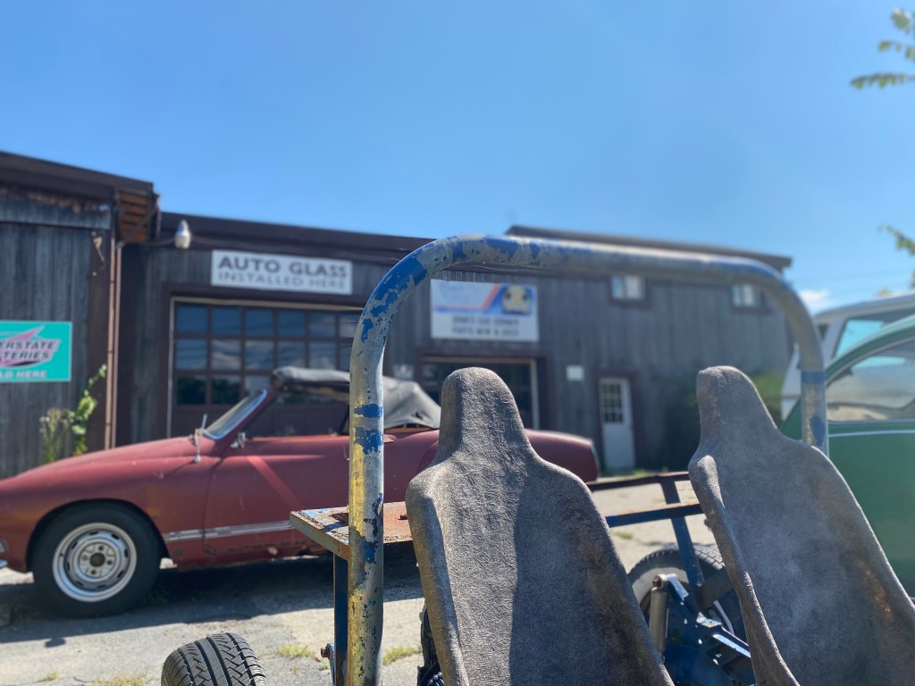 We heard about John’s Car Corner from folks all the way from Connecticut through Rhode Island and up through Massachusetts. Everyone said you need to stop at John’s Car Corner and talk to John. They were right. Soon we were standing in the shop itself, just outside of Westminster, Vermont—it a mix of parts store, workshop and museum. And John is your parts guy, the lead mechanic, and curator. Traffic whooshes by outside and a couple regulars stop by to sit at the counter and chew the fat.