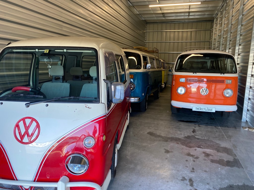 Ces Saavedra contacted us before we departed on our 49 state tour in our own VW bus, Aide. She sent me this picture of her six buses lined up on the shore of Lake Norman and said, you need to come to North Carolina. We put her on the map right away and a mere 12 weeks into our journey, we were able to meet her and her husband Doug and their pack of dogs.