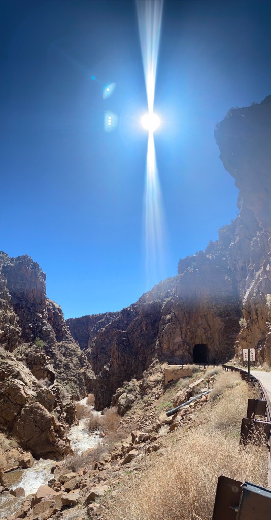 We drove the stone tunnels—a backroad if ever there was one. But the views after the second pass where perhaps the most breathtaking we have seen thus far. On our way to the hot springs, we passed a naturally forming dam that smelled of sulphur. Then we hiked a half mile out to a cliffside hot spring where we soaked in the warm waters and hot sun. I hear I-25 has some great billboards though.