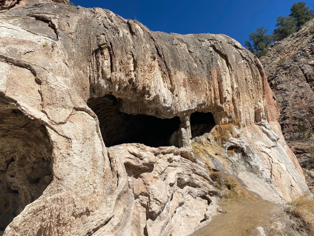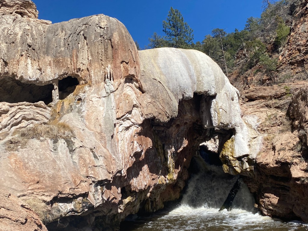 As we passed through a tiny village called Jemez Springs, we pulled over. It was just too amazing to not stop. The public library was open and we asked them for things to do. The librarians told us about the rock tunnels and the hot springs—the free ones you can hike to instead of the rather pricey ones in town that aren’t dog friendly. Oh, and we should grab a drink at the local bar. So we did. The bartender gave us some hiking tips and told us which hot spring was the hottest and which one was worth the hike. We got the green chili stew and it was delectable and obviously made from scratch. But McDonald’s would have been faster.