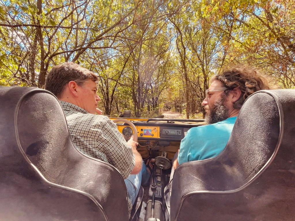 Pat also has a VW Thing. If you’re not familiar with the Thing that’s because most of them are stored in barns moldering away in various states of disrepair. Not Pat’s. He offered to take me out on the trails of his property and then on the gravel roads of the Flint Hills. It was the way to experience Kansas: windshield down, dust flaring up behind us, open land stretching out to either side.
