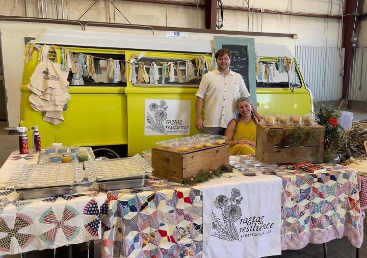Amanda and Matt Hakola have owned a few buses before finally finding their current bus and landing in Oklahoma. Their bus is also the mothership for their business Ragtag Resilience—an approach to stabilizing food systems by doing a lot of little things that add up to change. (They farm their .15 acres and grow lots of amazing foods to feed their family and sell at market.) Their business caught the eye of Leonardo DiCaprio’s personal chef during the filming of Martin Scorsese’s “Killers of the Flower Moon” while shooting on location in Oklahoma, which led to Amanda and Matt catering the film’s wrap party.